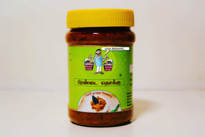 250g Pirandai Thokku – A tangy, spicy thokku made from fresh Pirandai, known for its digestive and bone-strengthening benefits.